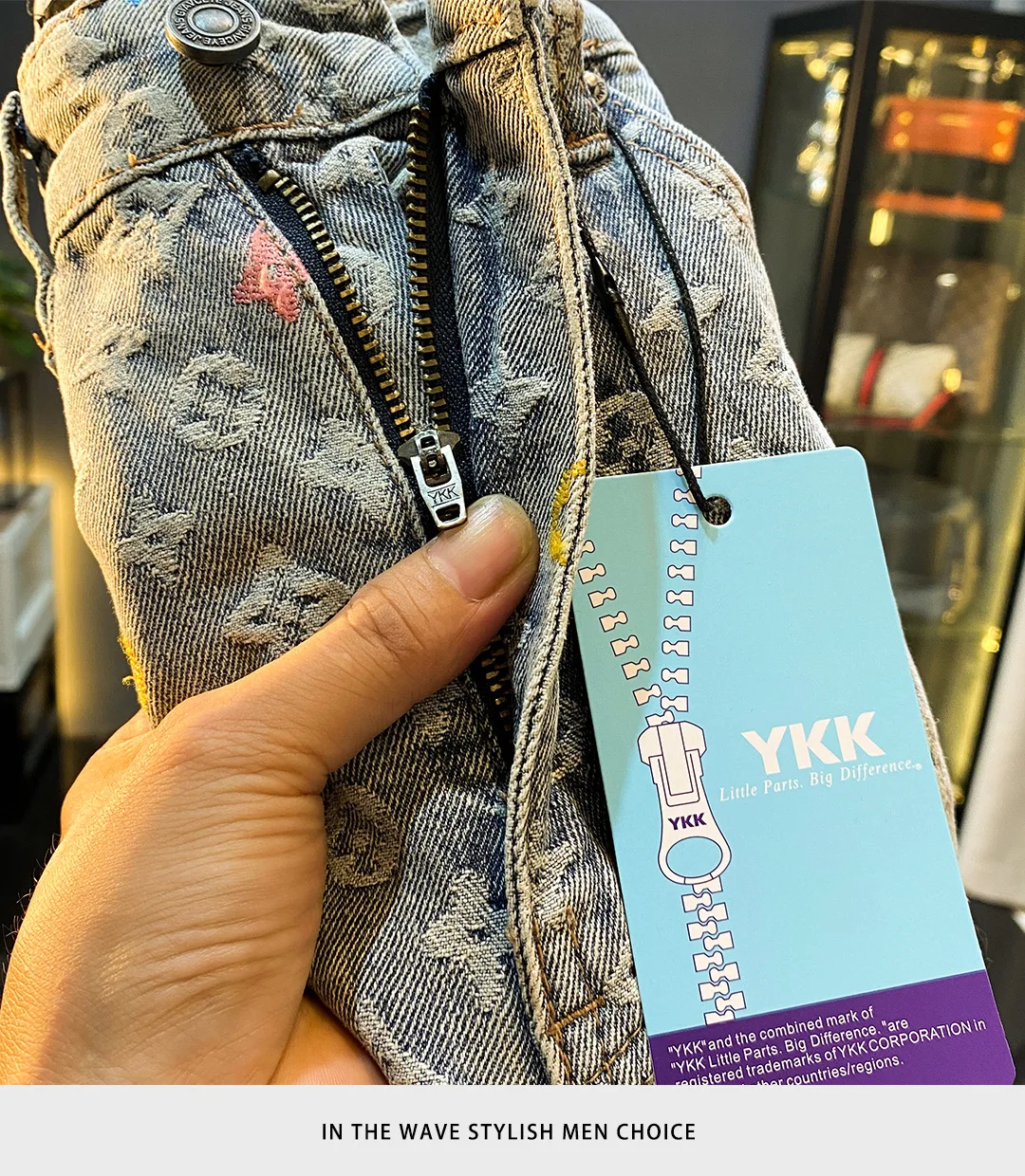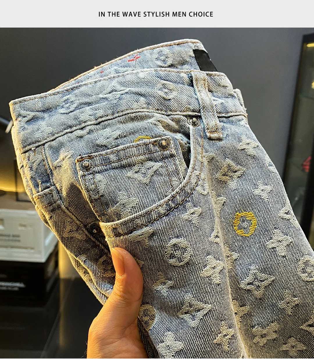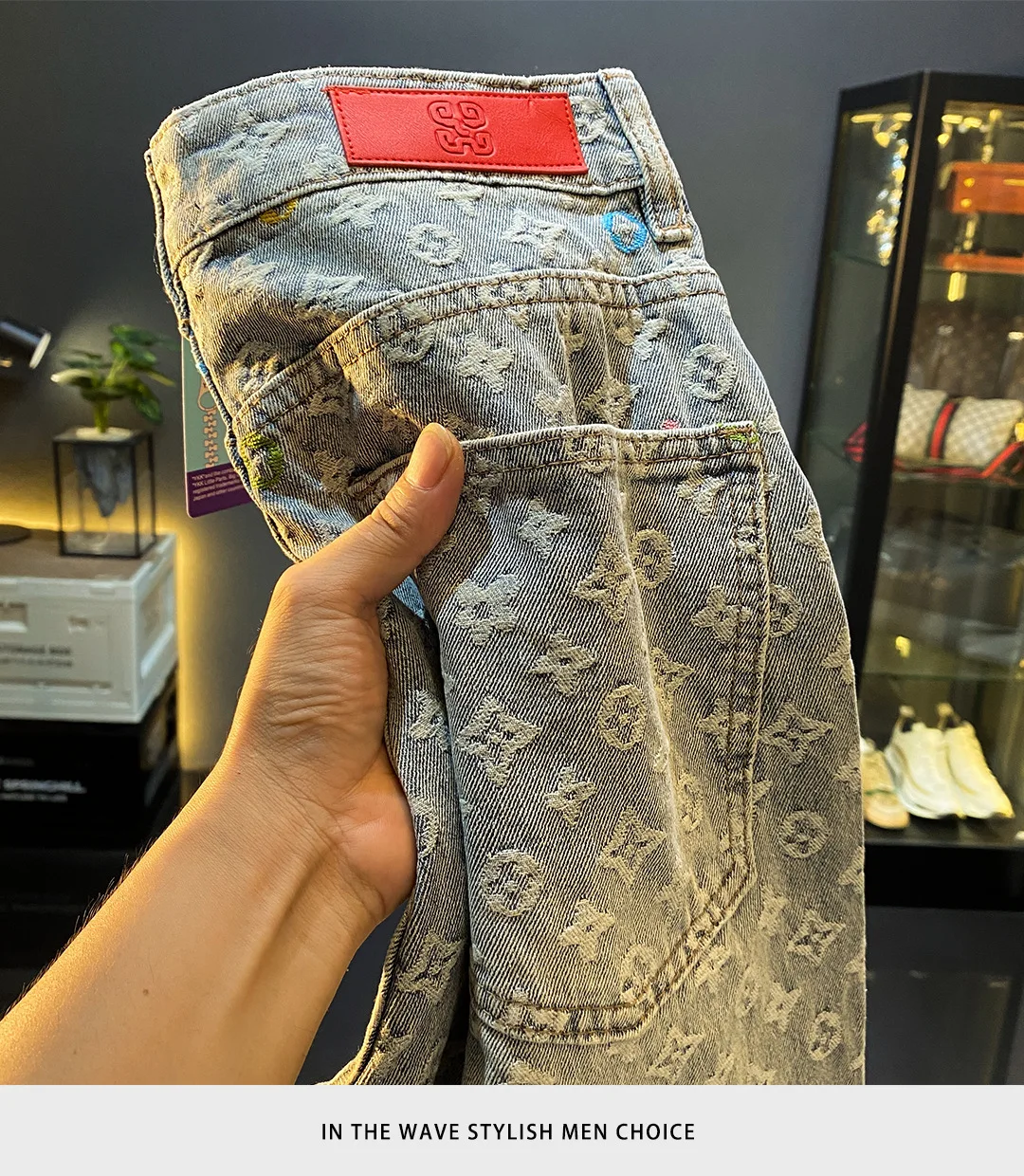 - Luxury Jacquard Fabric: Crafted with intricate jacquard weaving, these jeans feature a textured, elevated design that adds a touch of luxury and exclusivity.
