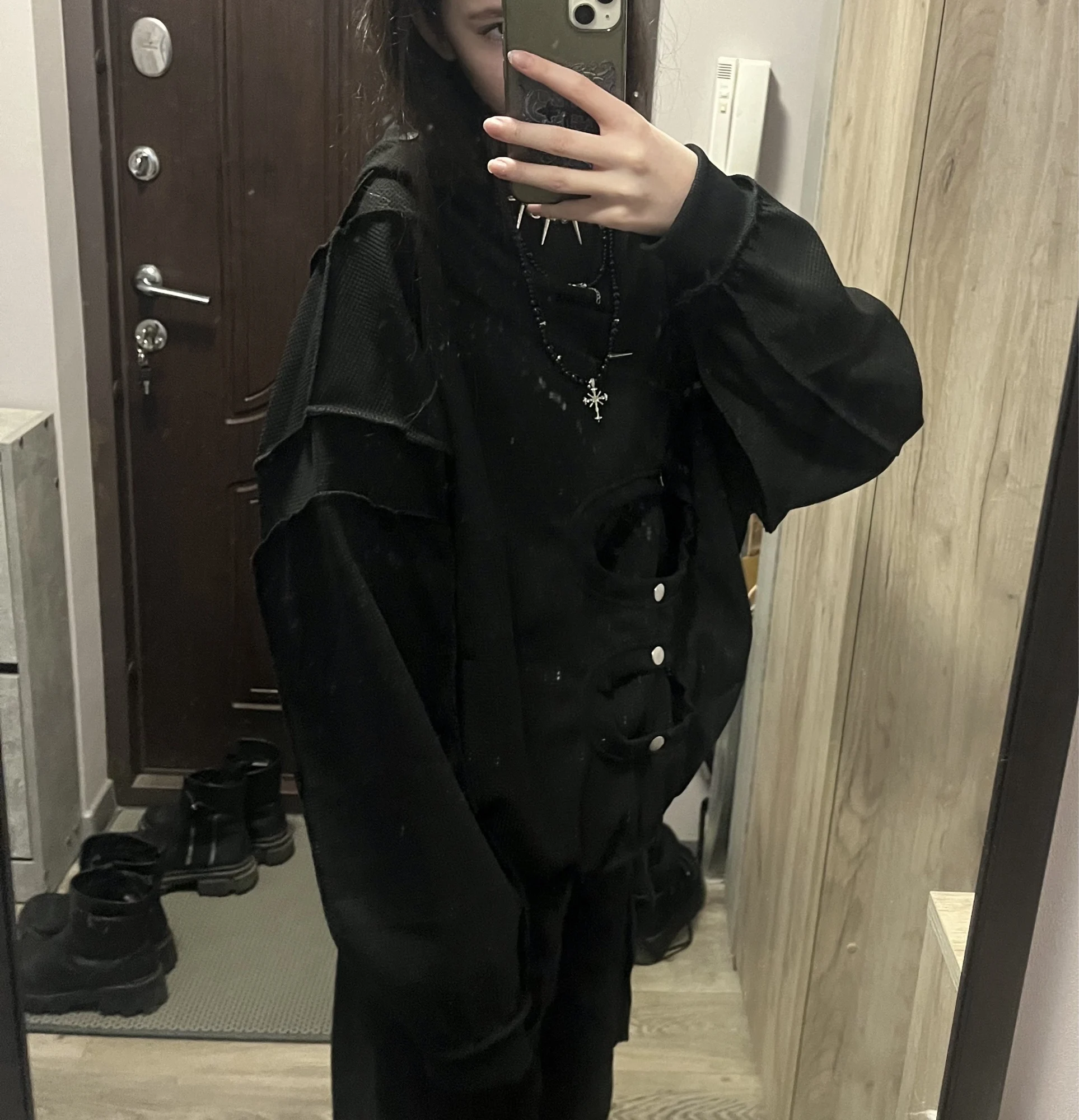 For those who appreciate functional fashion, the concealed pocket for the knife holder isn’t just practical, but it also enhances the garment’s urban stealth appeal. The pocket remains invisible to the outside world, making it perfect for those who prefer a more understated yet prepared look.