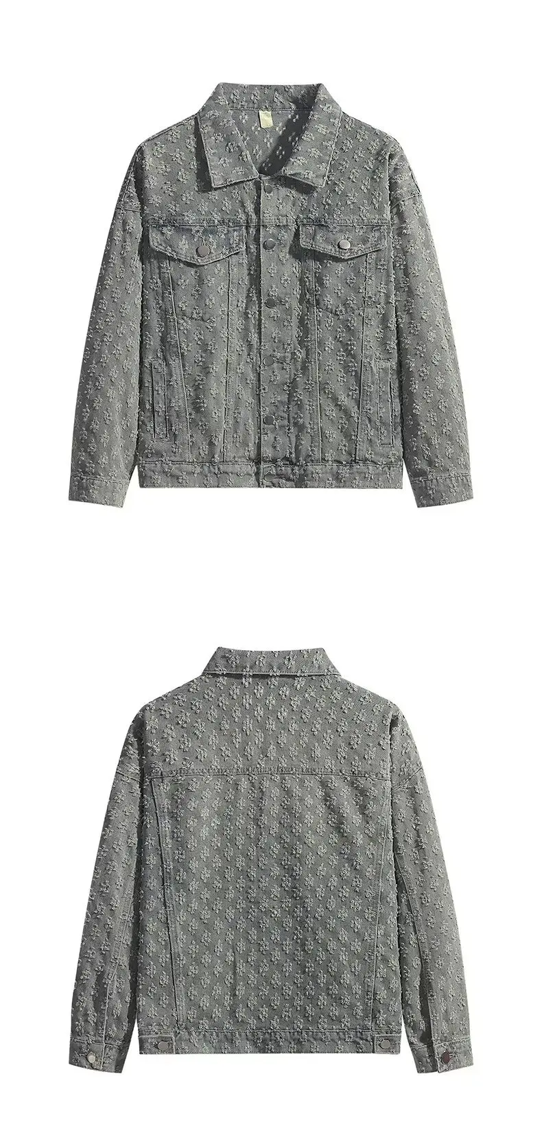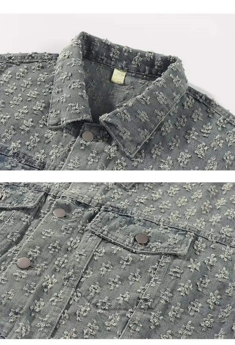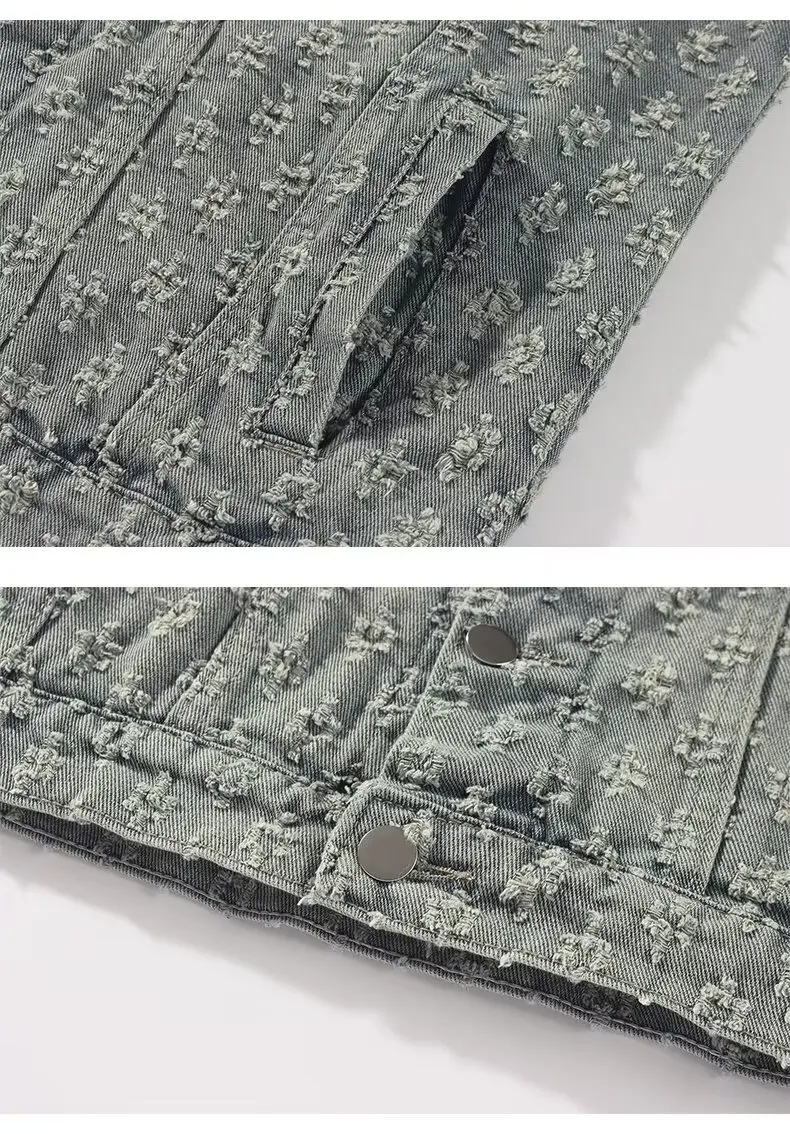 - Jacquard Pattern Denim Vintage Jean Coat: The standout piece in this set, this denim coat features an intricate jacquard pattern that adds texture and depth to your look. The vintage-inspired design, complete with distressed edges, offers a timeless, rugged aesthetic. Perfect for layering over your favorite outfits while still making a statement. 💥👖