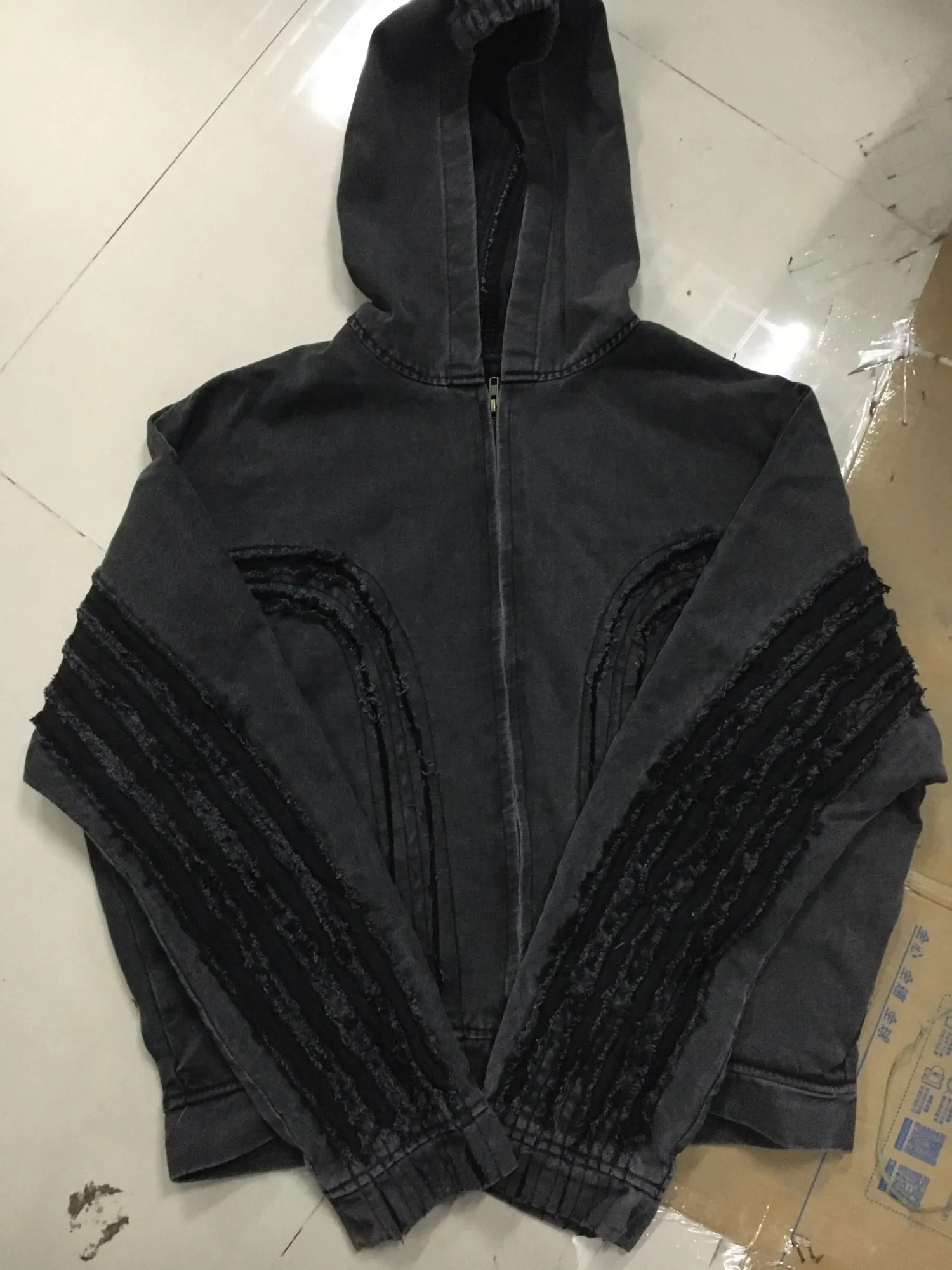 Y2K Retro Cross Patchwork Trendy Hoodies for Men Gothic Fashion Street Hip Hop Zip Up Hoodie Splicing Working Clothes Sweatshirt